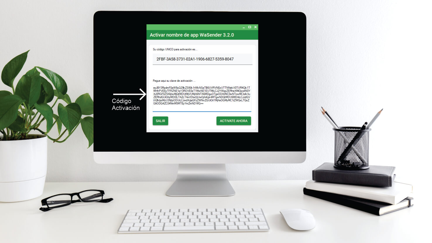 2. Te reenviare la Clave de Activación. Te enviaremos a tu whatsApp el código. Copialo y pegalo en el recuadro de ejemplo.